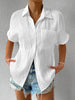 Shirt Collar Casual Buttoned Loose Blouse