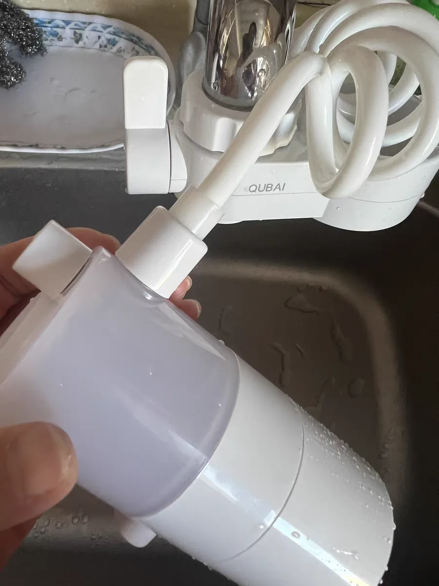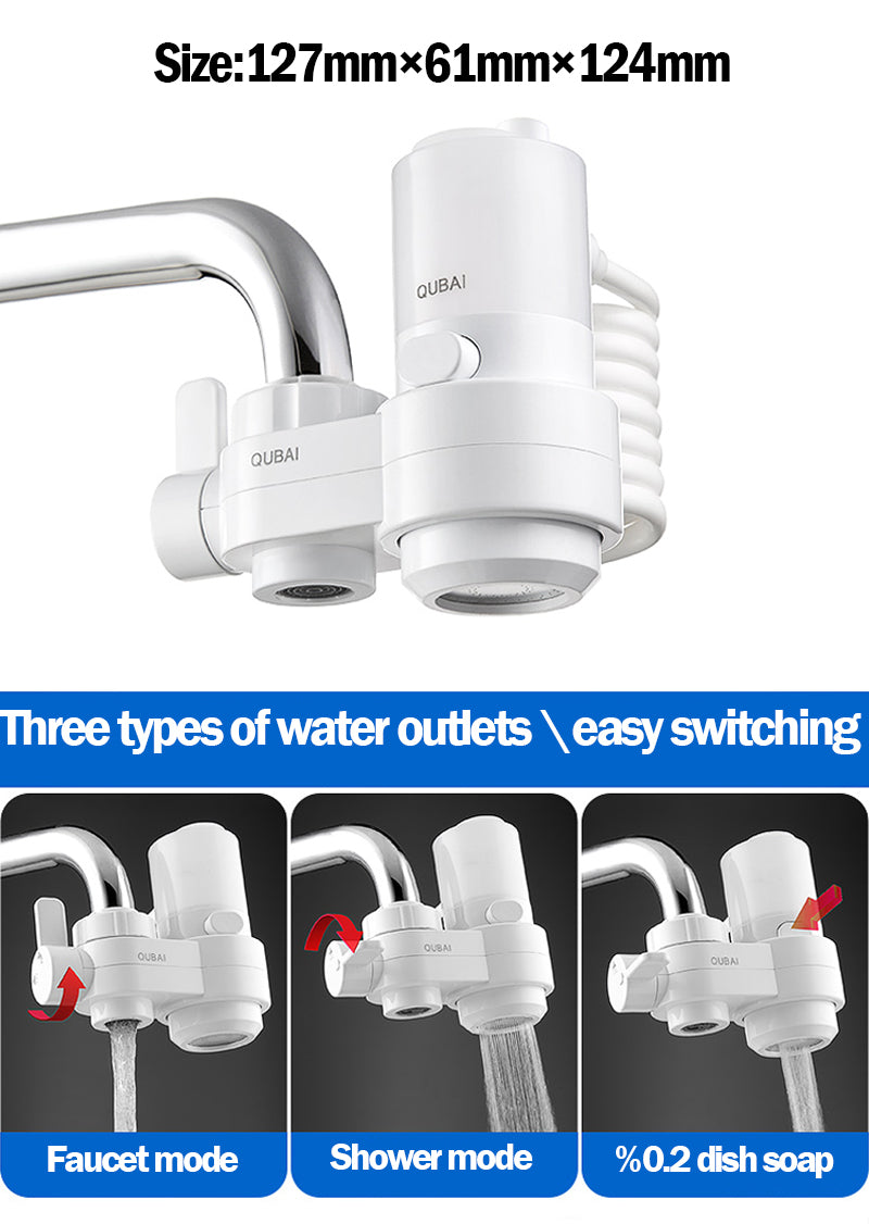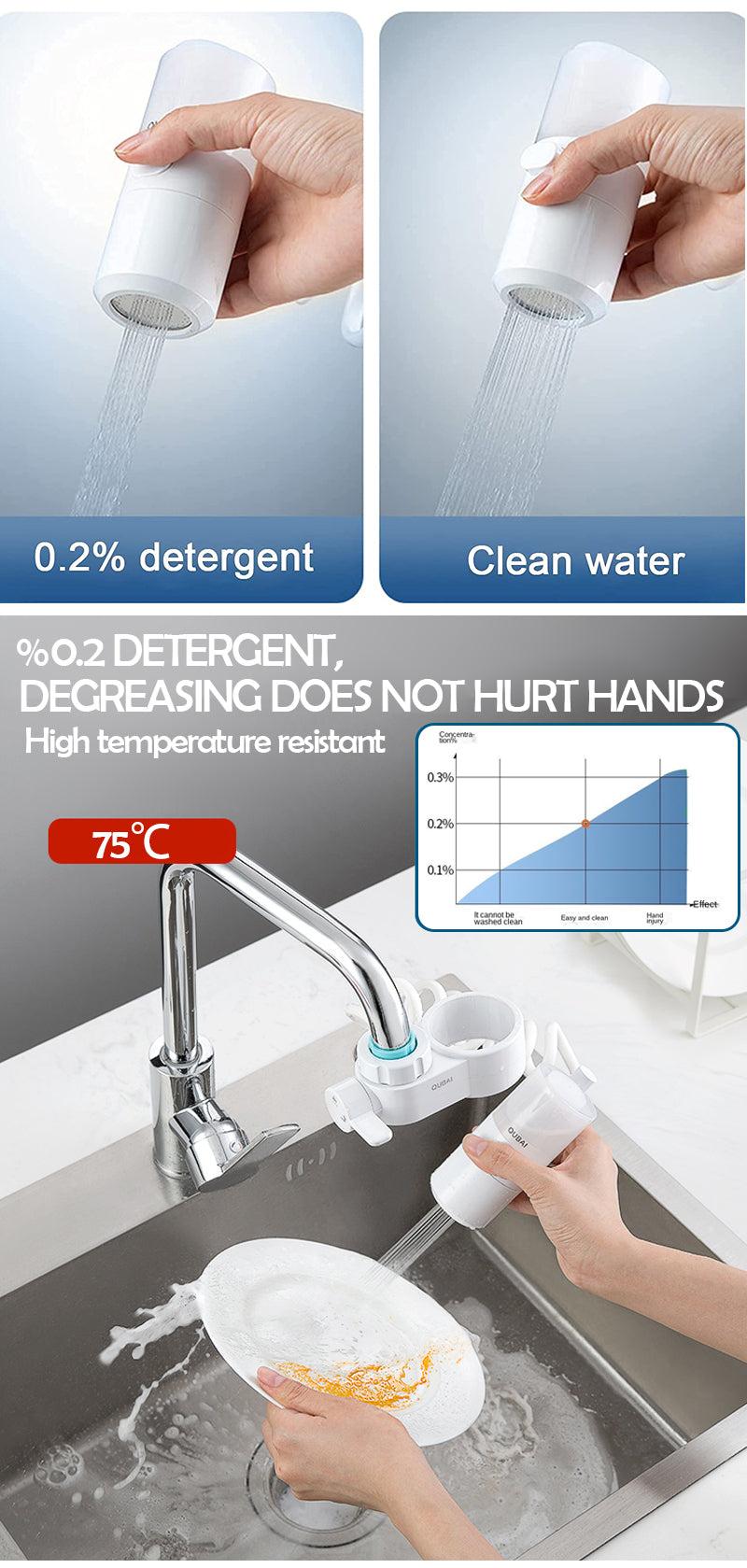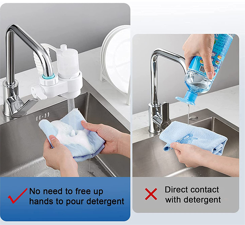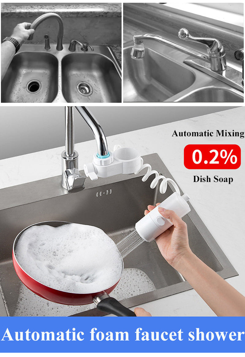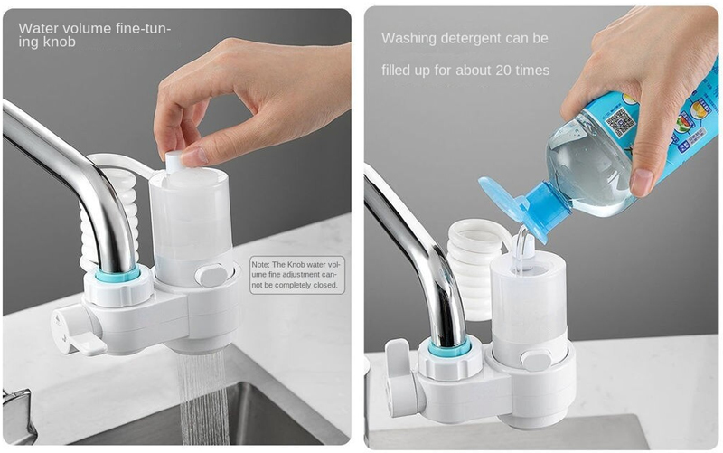 The kitchen sink sprayer attachment has two water outlet modes, a one-button switch between detergent and water, and easy-to-wash dishes.