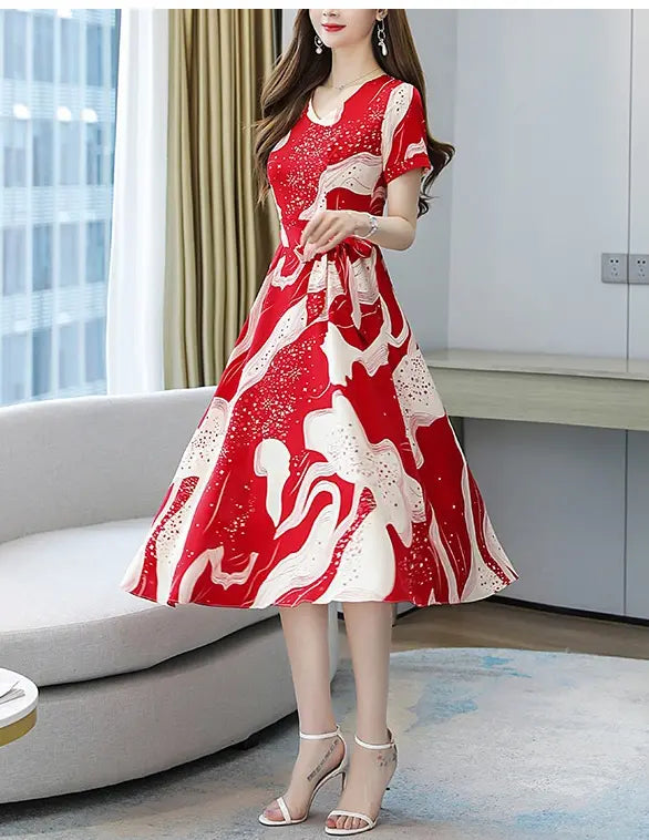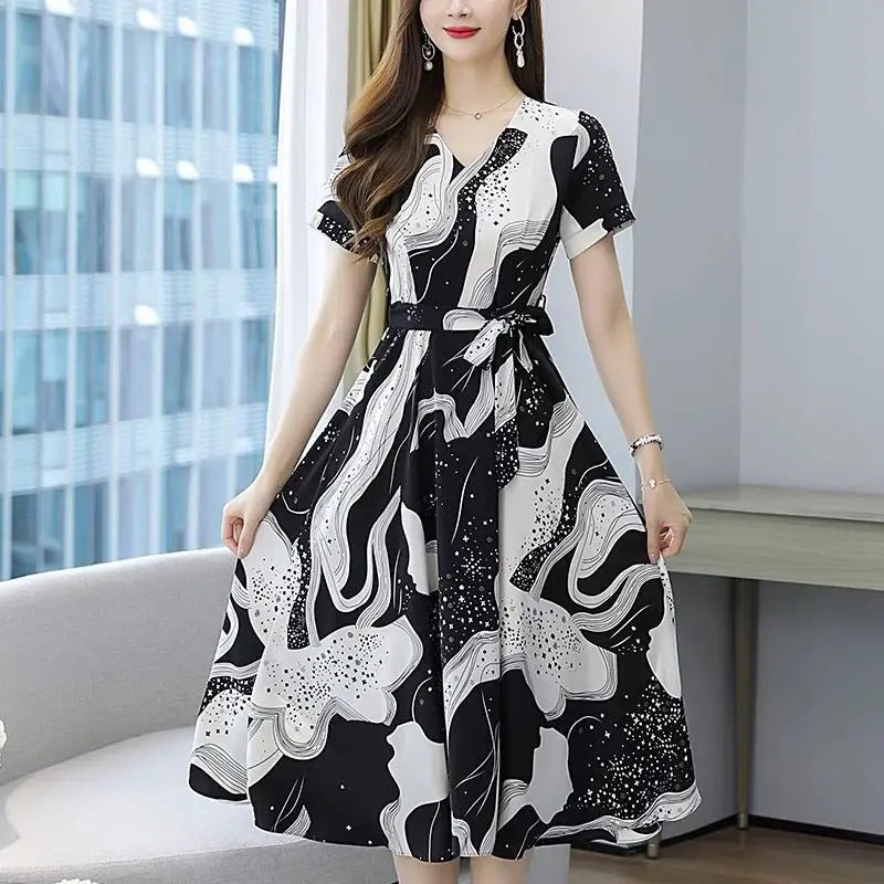 👗【M-4XL】Sleek print V-neck dress