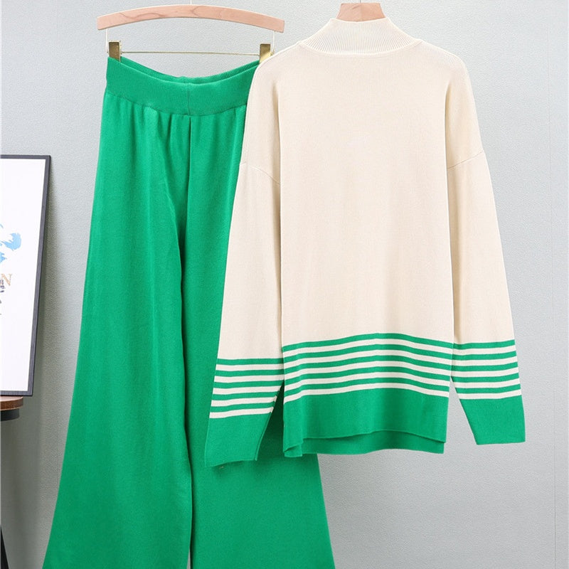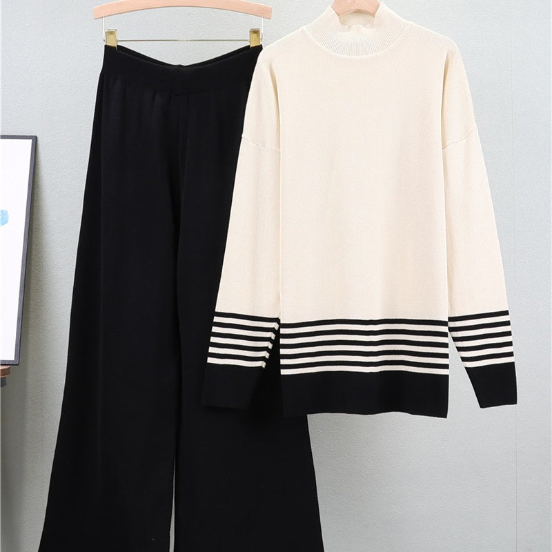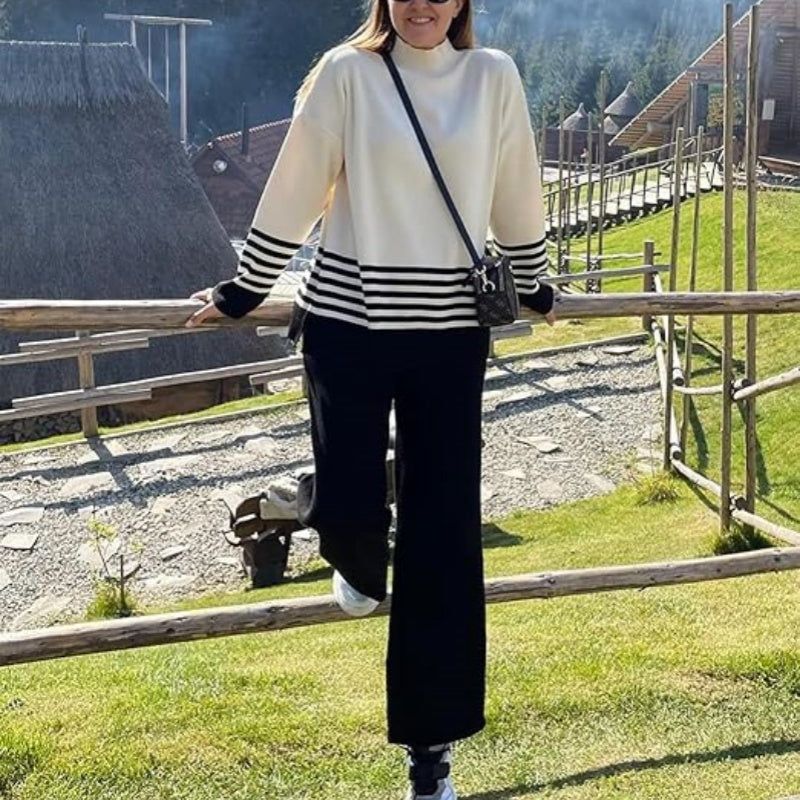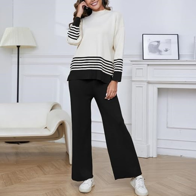 🌟Soft Striped Sweater & Wide Leg Pants Set💕