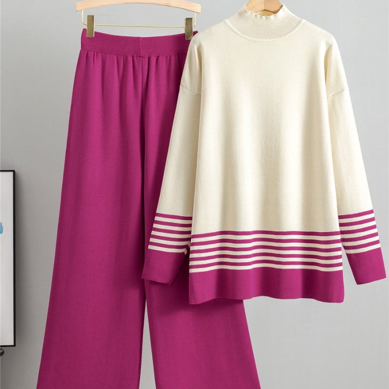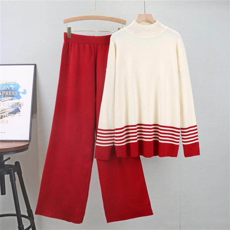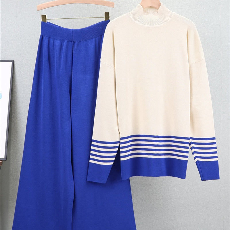 Package Included:1*Soft Striped Sweater & Wide Leg Pants Set