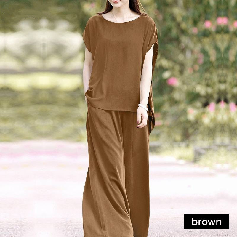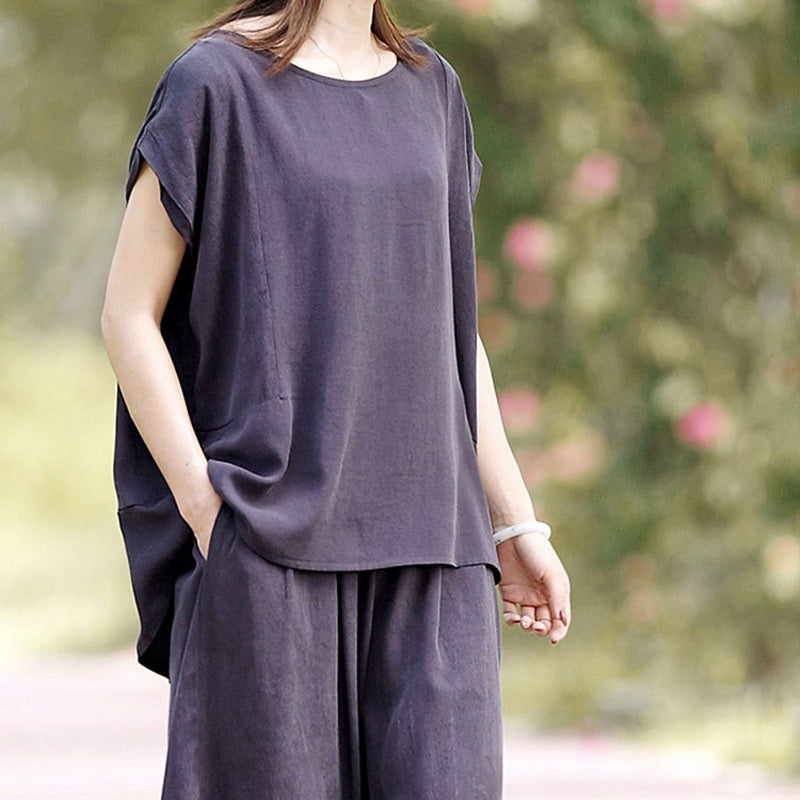 This solid color casual wide-leg pants set is handmade by skilled craftsmen with our hearts and soul. Even in this modern age of many machines, our dedication to handcrafting remains unchanged. It is perfect for daily wear and will make you look stylish.