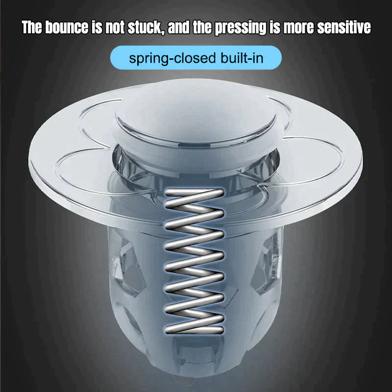 【DRAINED QUICKLY WITH ONE CLICK】The sink drain plug has a beautiful bullet core thrust shape. Good rebound strength, quickly seal and drain water with a single press. Very convenient and fast. Structured with a thickened stepped silica-gel gasket, prevent the sewer from odor, so you can enjoy the fresh air at home
