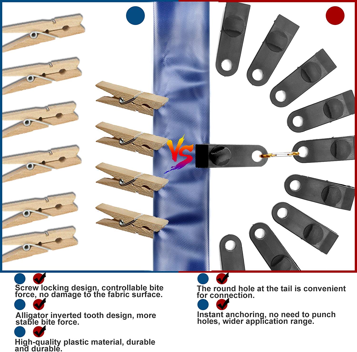- Unique Locking ClampĀ - The interface of clips is in teeth-shaped, and the Spiral buckle design can clamp the tarpaulin to a maximum degree, no need to worry a fallen off the problem.