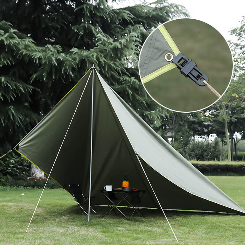 After fixing the tent with tarp clip, provide instant anchor from the ground, can withstand strong winds, will not accumulate water even in heavy rain.