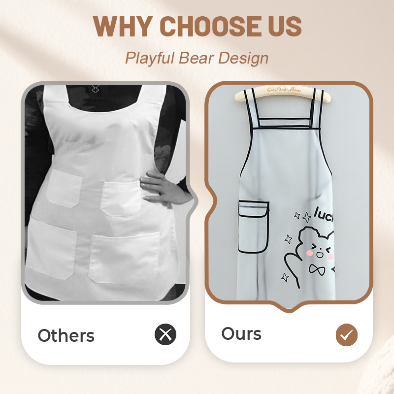 DELIGHTFUL DESIGN: Featuring a delightful cartoon bear motif and sparkling stars, this apron adds a touch of charm to your daily routine. Its playful design enhances the user experience.