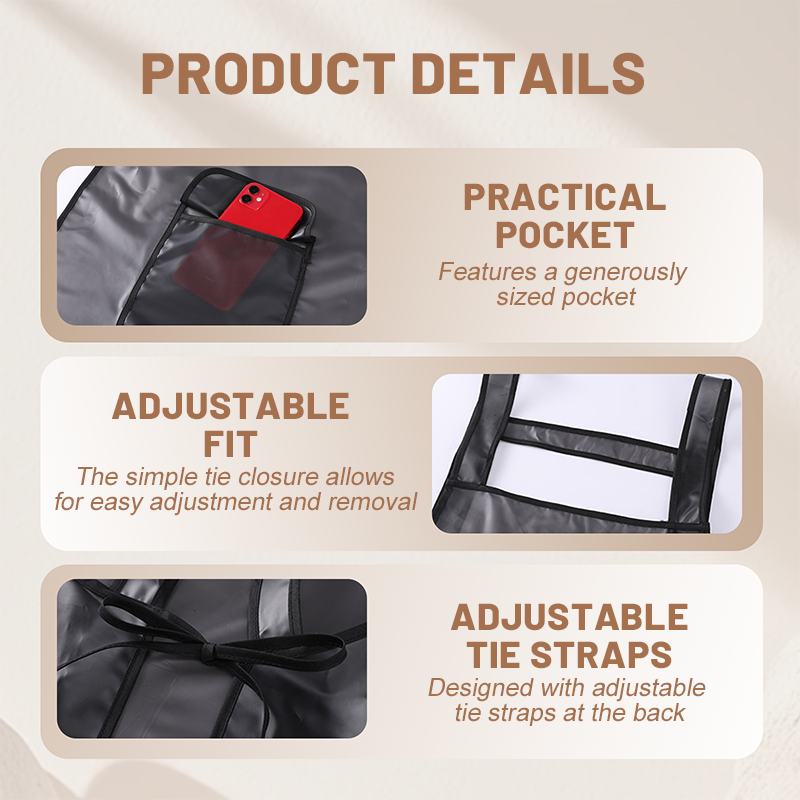 VERSATILE APPLICATION: Designed for a wide range of environments, this apron is suitable for kitchen cooking, household chores, and professional settings like barber shops. It also serves well for tasks such as cleaning swimming pools, offering broad utility.