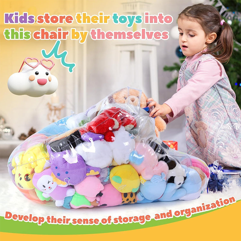 PLUSH TOY FILLING: Experience unparalleled comfort as you sink into a soft, elastic cloud of your favorite plushies. The chair's fill adapts to the toys inside, creating a uniquely supportive and cozy seat.
