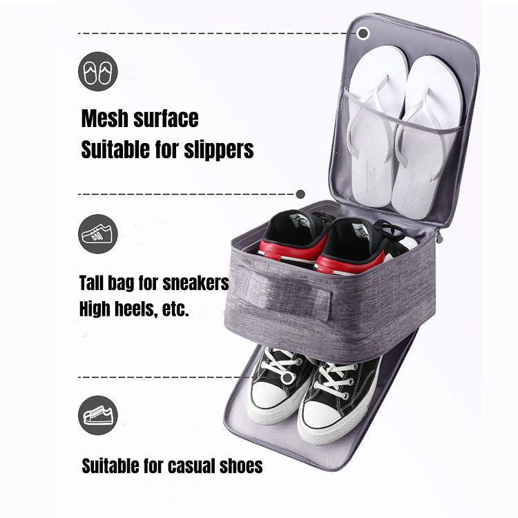 This bag can hold 1 pair of Sneakers or high heels, plus 2 pairs of sandals or flat shoes, it can be easily put into the luggage suitcase and save a room for you.