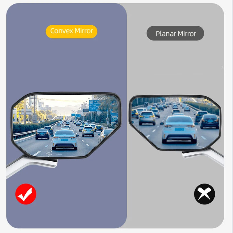 ADJUSTABLE ANGLES: The mirror features a fully adjustable angle, allowing you to adjust the view according to your riding position and preferences. Easily tilt and rotate the mirror to achieve optimal visibility and adjust to different road conditions.