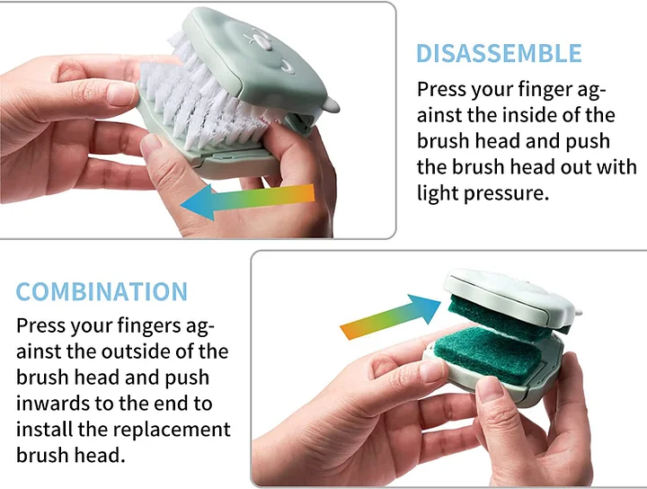 2 BRUSH HEADS - One silk brush and one scouring pad, they can be replaced with each other.