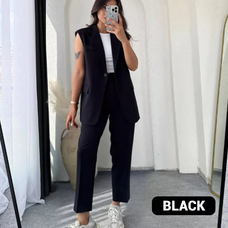 🌸💖 Women’s Stylish Sleeveless Blazer & High-Waisted Pants Set