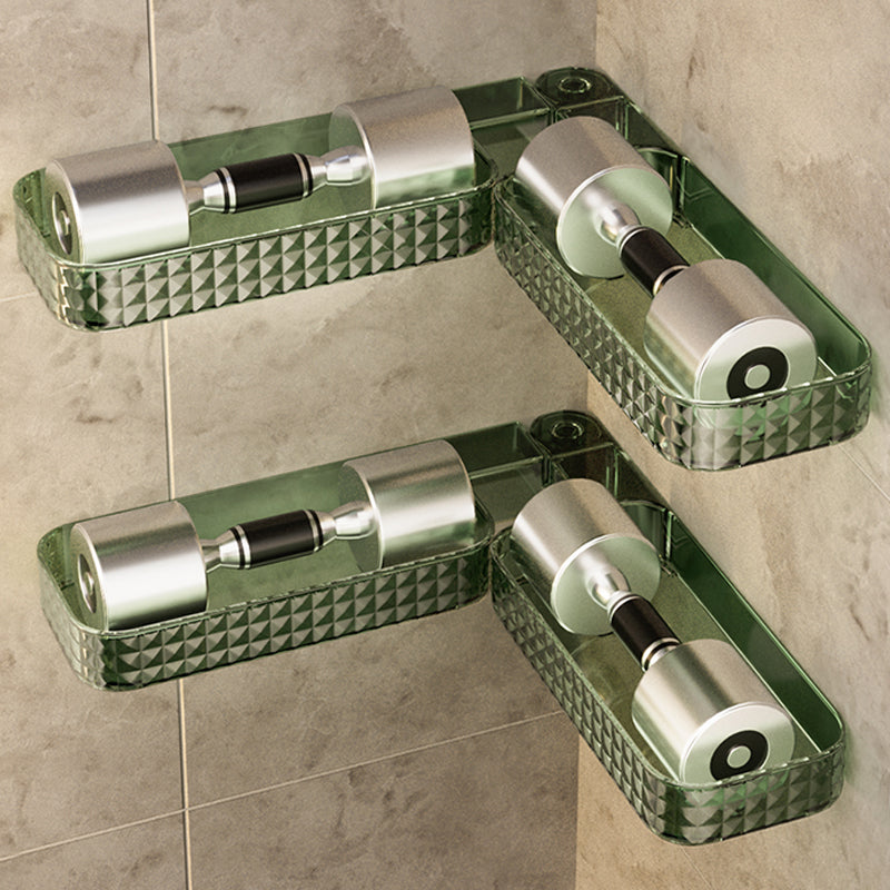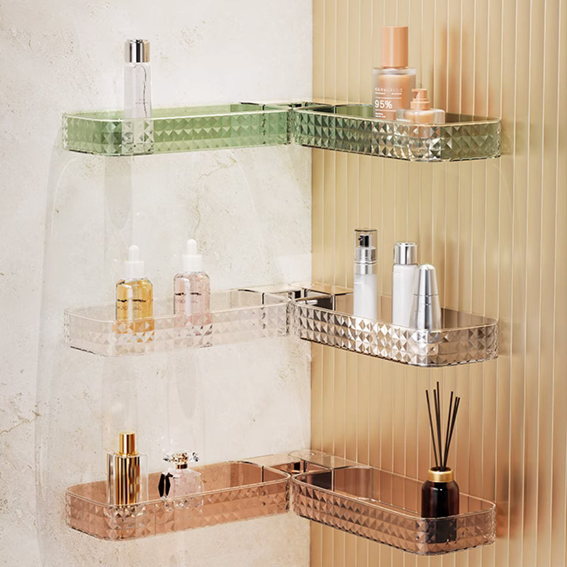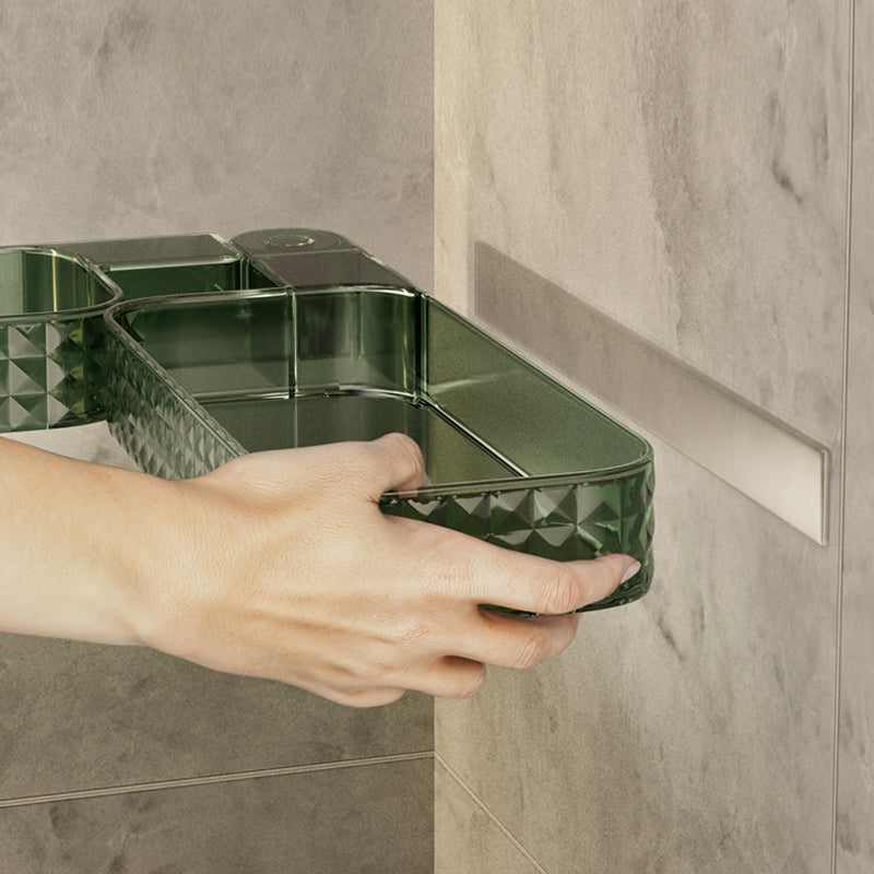 This wall mounted adhesive bathroom organizer is made of thickened material, making it more durable and space-saving. It's perfect for organizing your toiletries and other items.