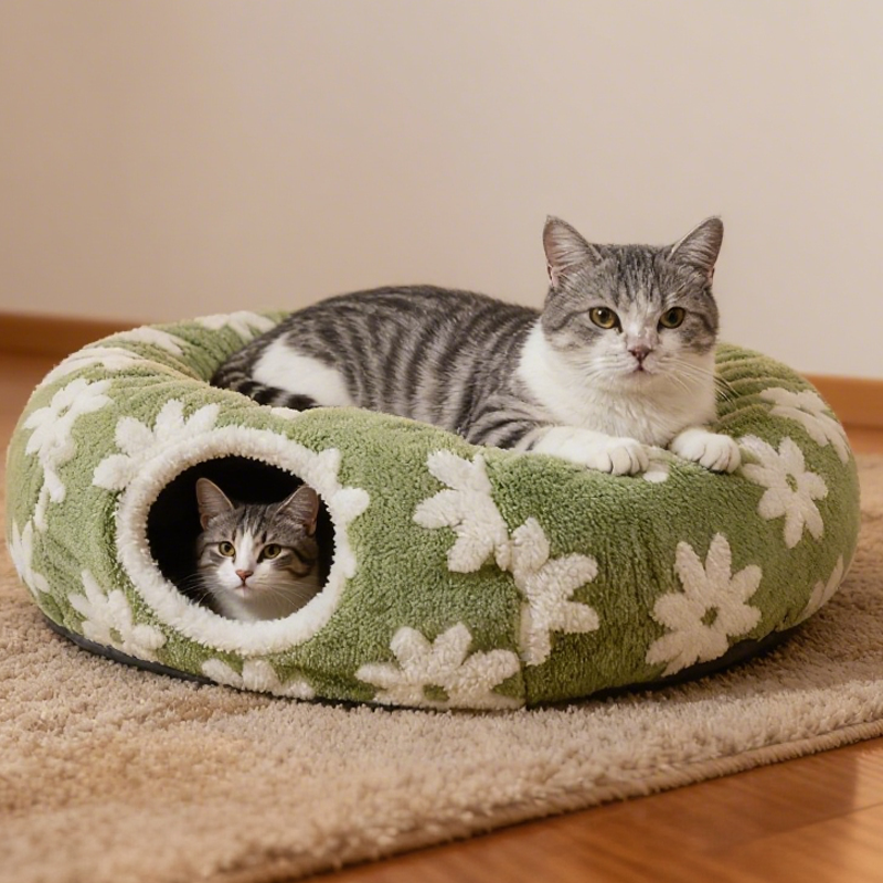Always position the tunnel bed on a stable, flat, and non-slip surface to prevent movement during active play and ensure your cat's security.