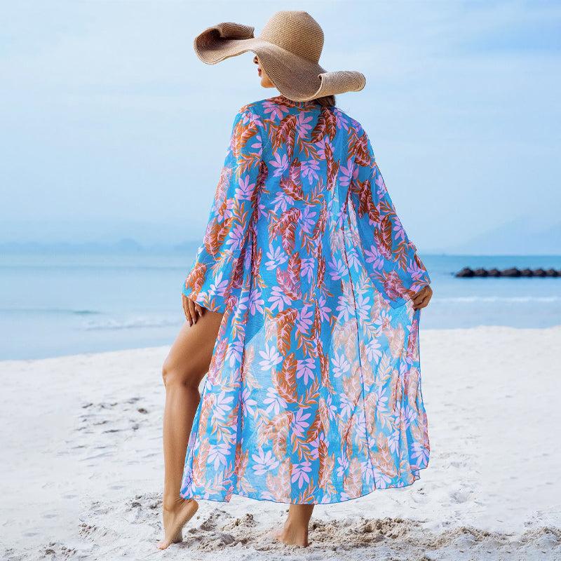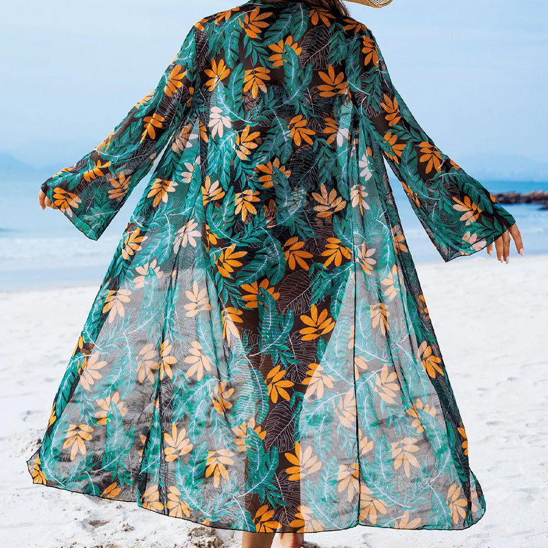 FASHIONABLE FLORAL PRINT: Vibrant floral print and kimono cover-up create a stylish, elegant and sexy beachwear combination.
