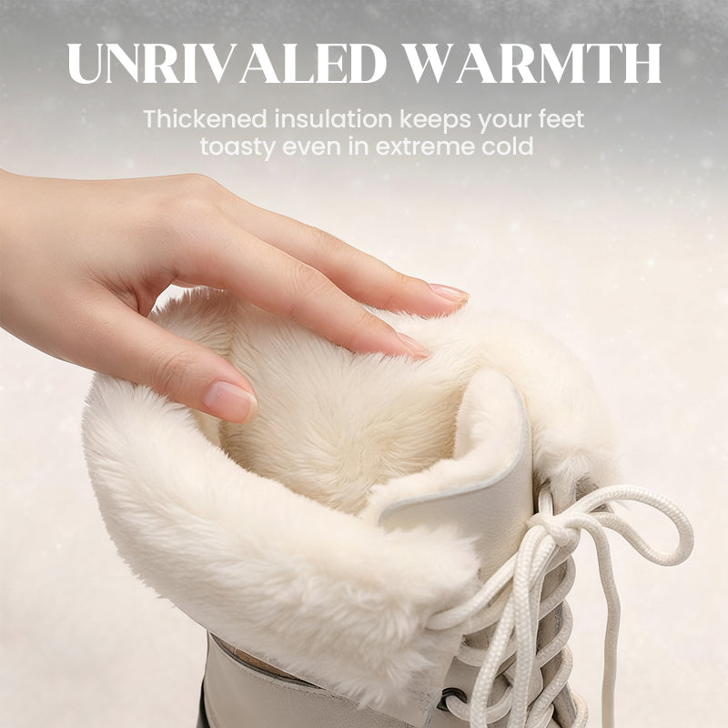 FASHION-FORWARD VERSATILE STYLE - Combining a classic lace-up design with a soft collar, these boots effortlessly complement your winter wardrobe, from casual jeans to ski pants, making you look chic in the cold.