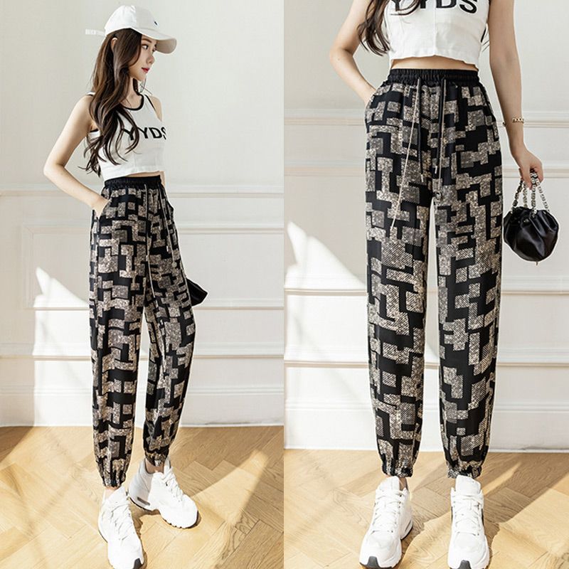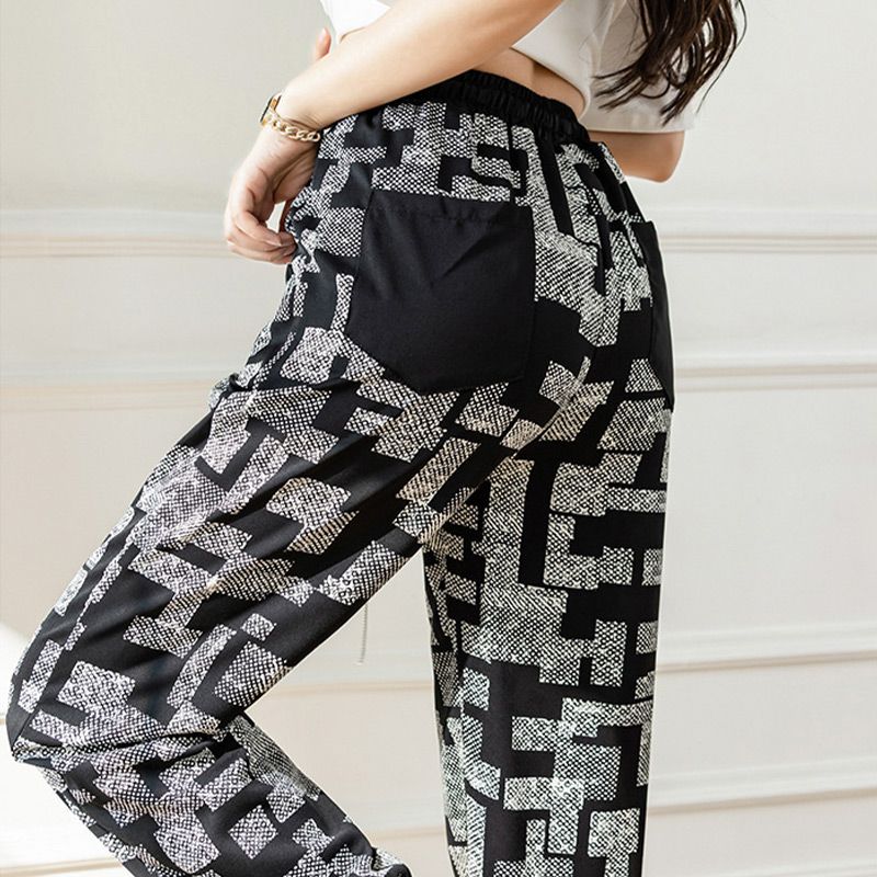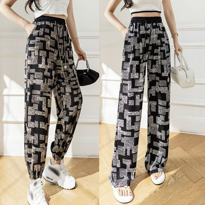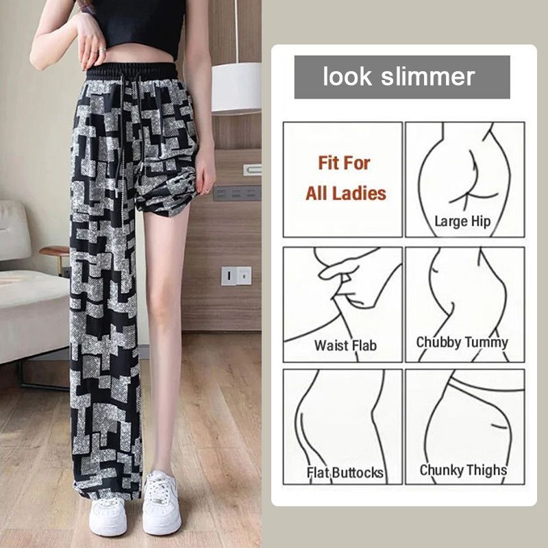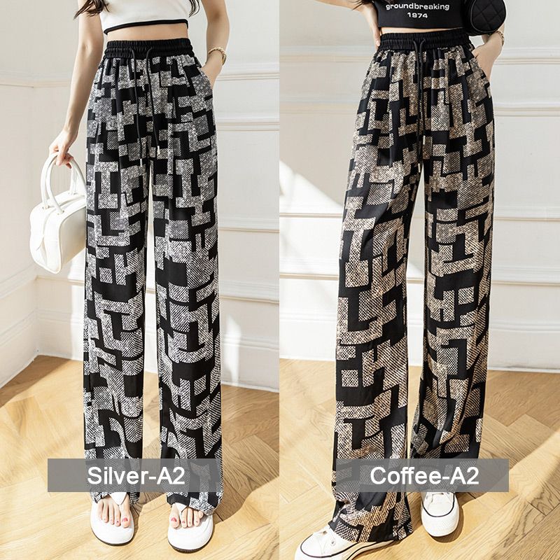 Package Includes: 1 * Women’s Maze Plaid Ice Silk Wide Leg Pants