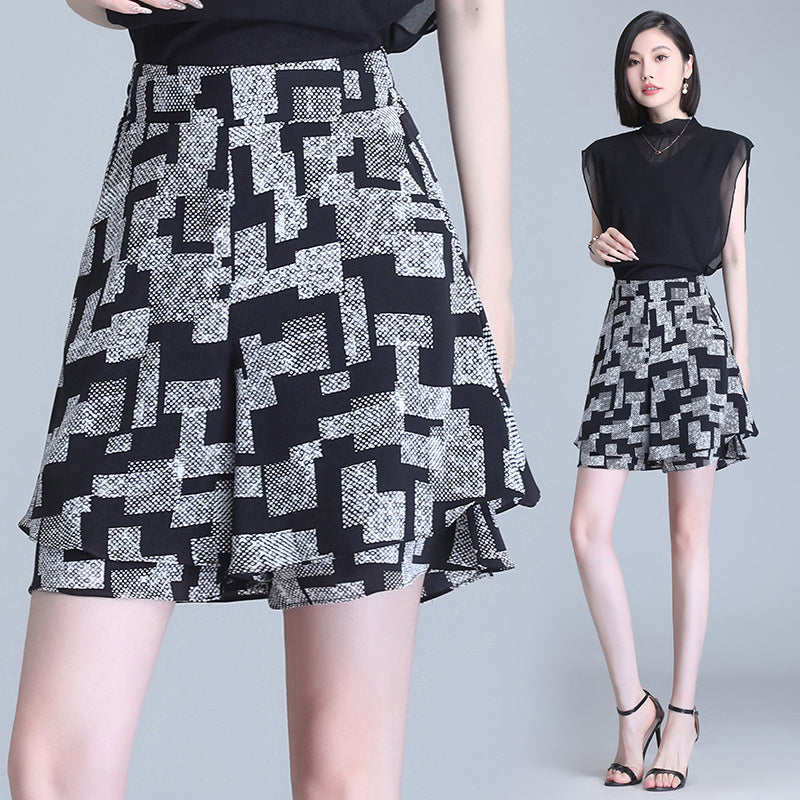 Women's High Waisted Layered Hem Casual Wide Leg Shorts