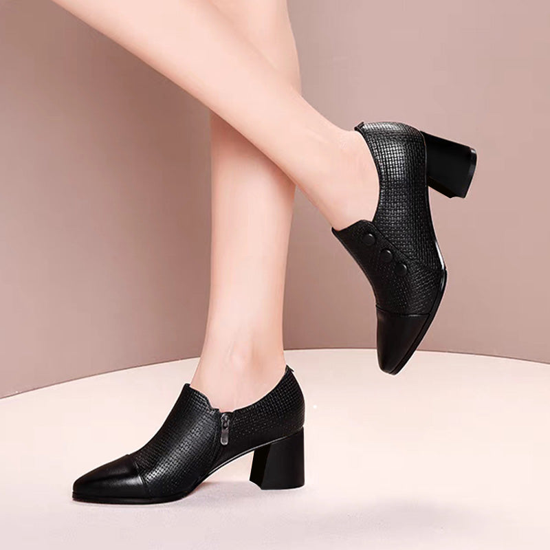 STYLE & DESIGN - A classic loafer features medium heel, pointed toe, texture upper and decorative buttons on side to give you rich highs and lows.