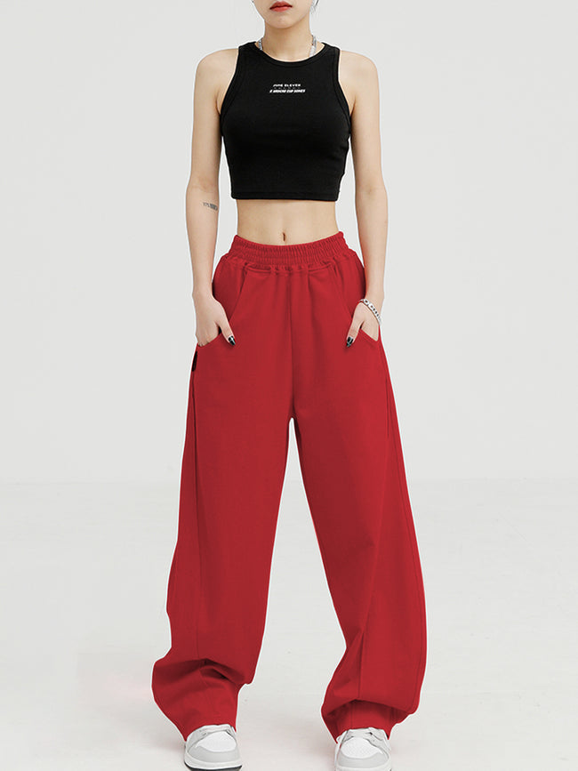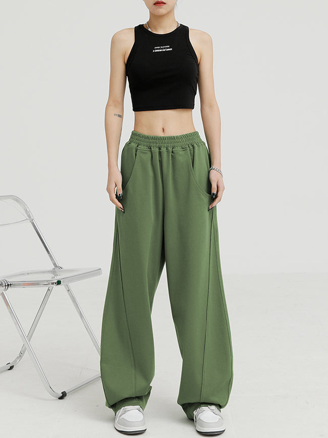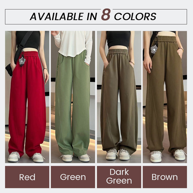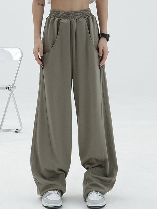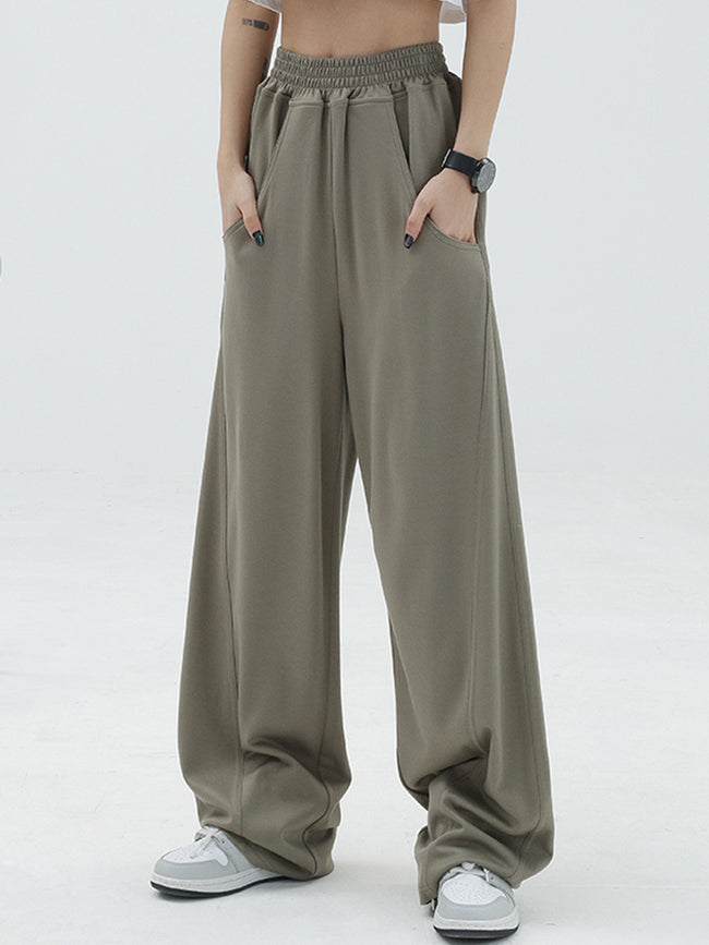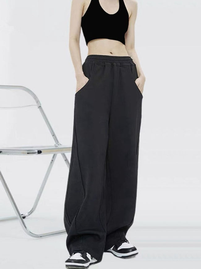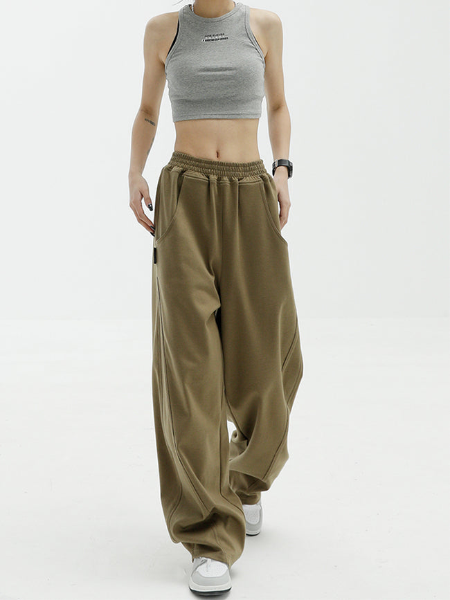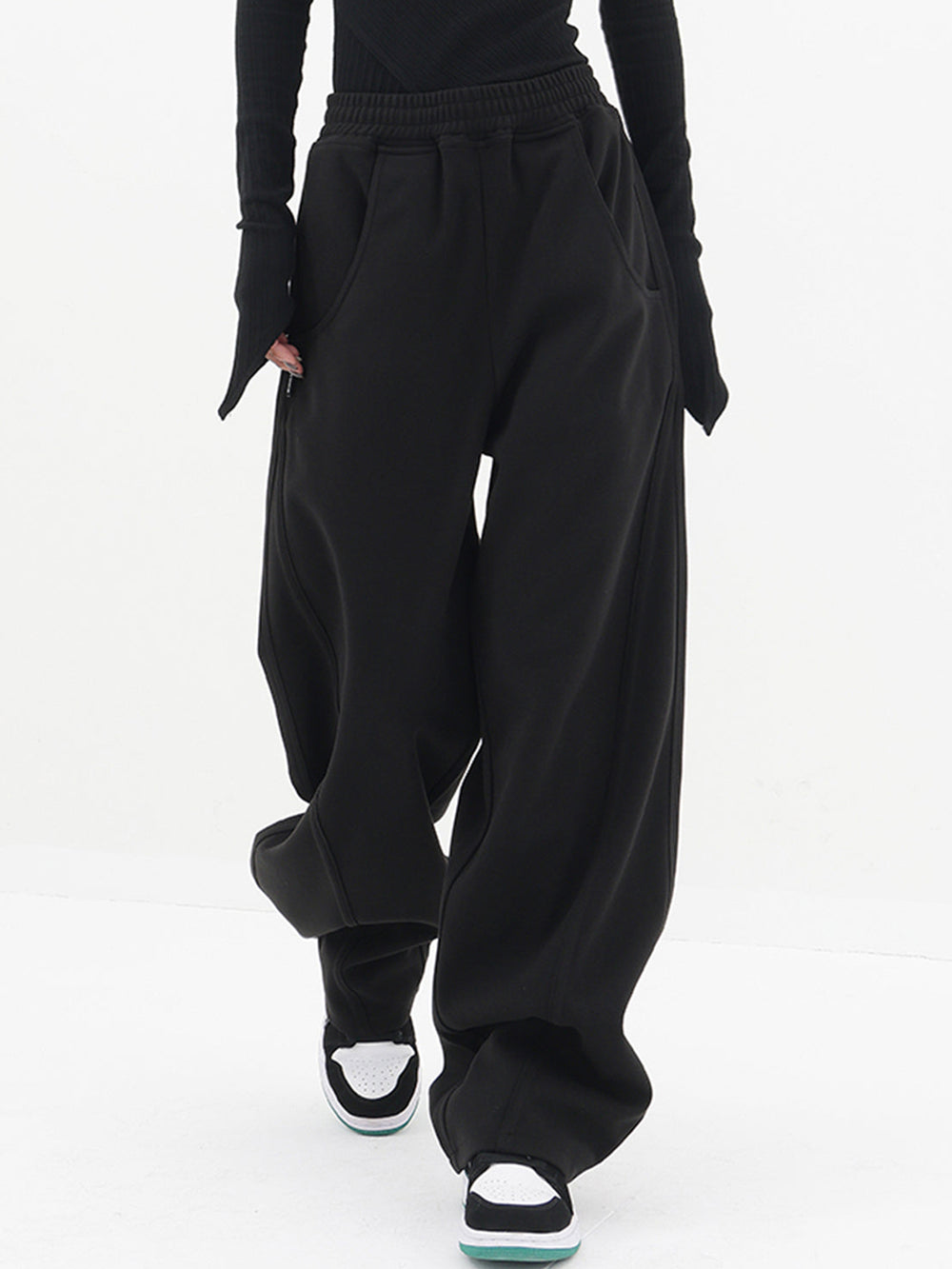 This is a pair of baggy elastic waist wide-leg sweatpants with two deep pockets. It's made with cotton and polyester. Shape your leg figures, properly stiff and smooth version.