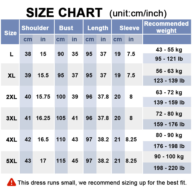 Available sizes: L, XL, 2XL, 3XL, 4XL, 5XL
