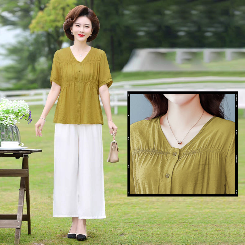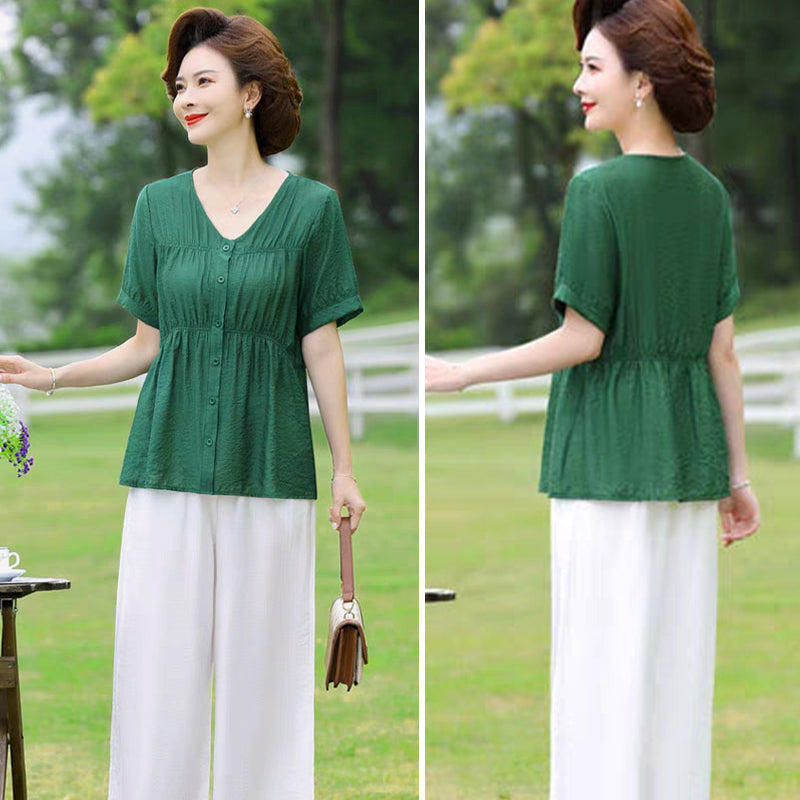 Women's V Neck Short Sleeve Top